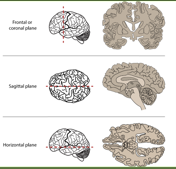 cuts exactly through the midline of the brain to produce 2 equal halves