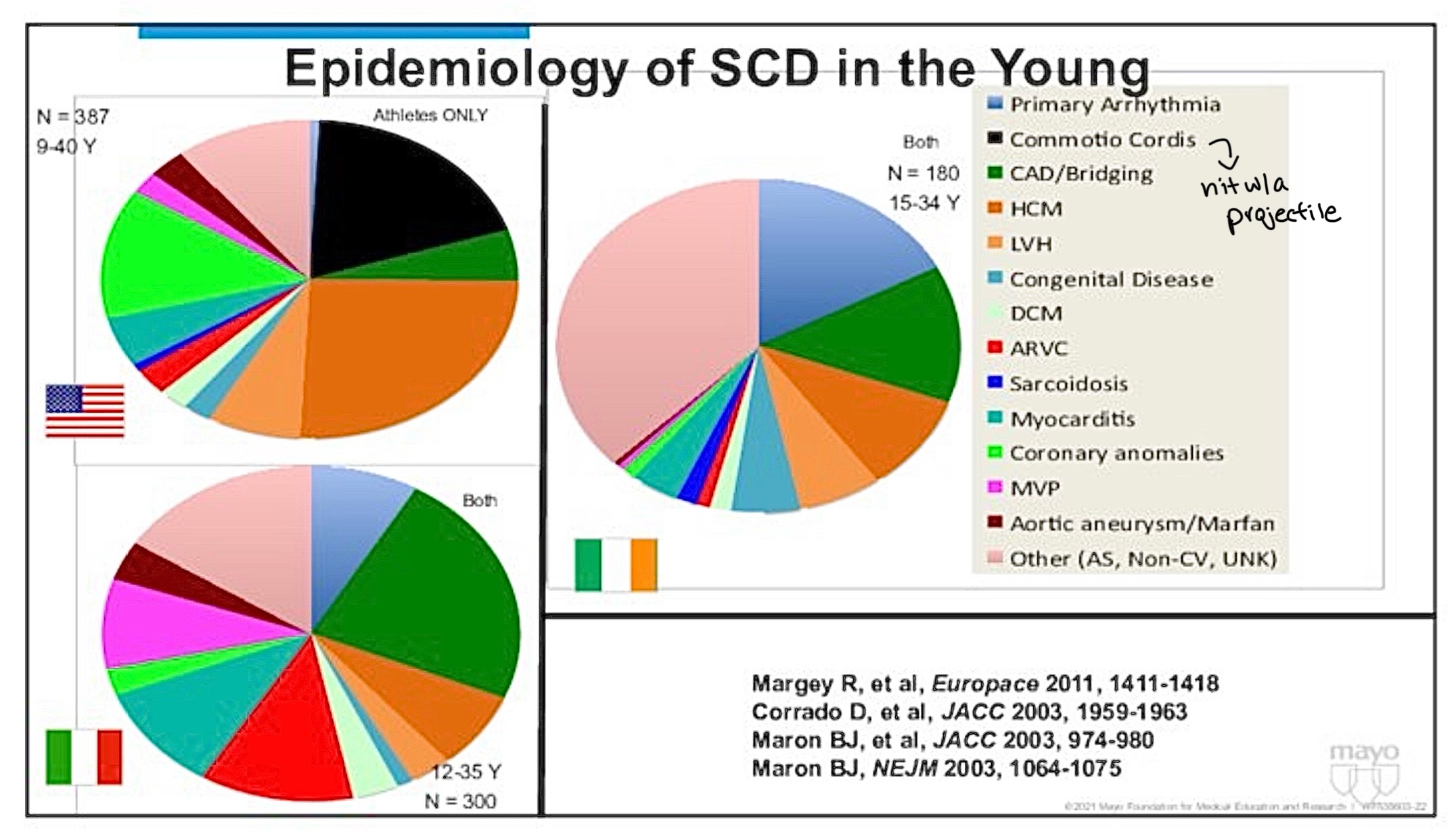 Recent data indicates increased incidence of sudden death in younger individuals due to: