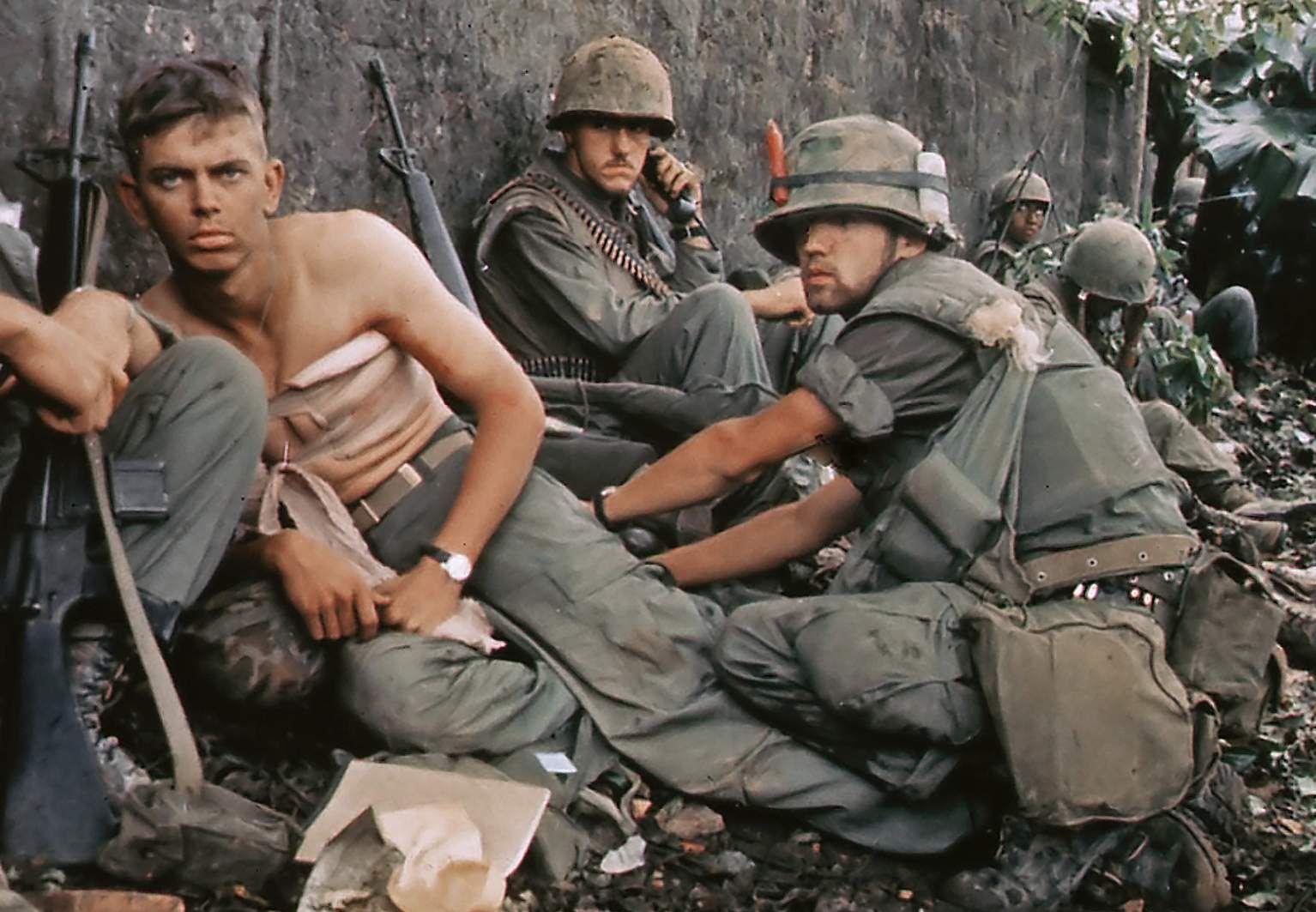 Image: A wounded Marine in Vietnam getting treatment