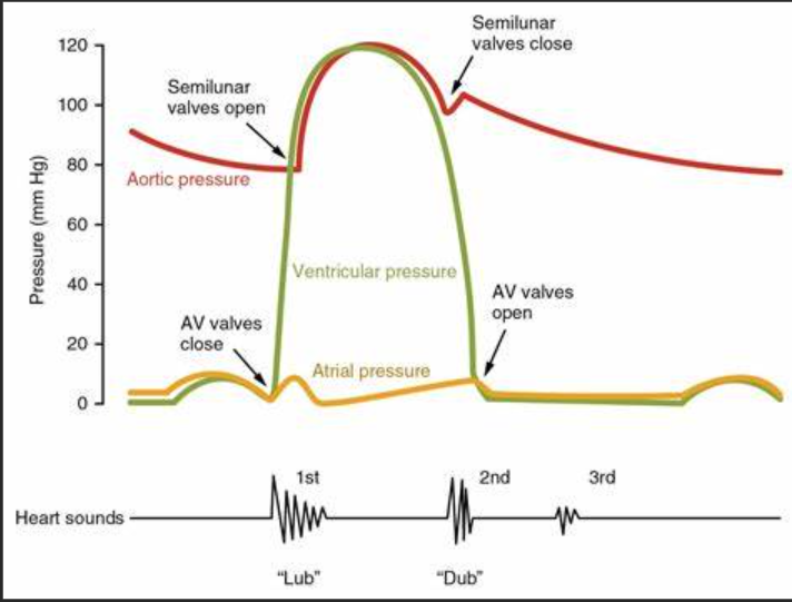 ventricular pressure is higher than aortic pressure so semilunar valves open