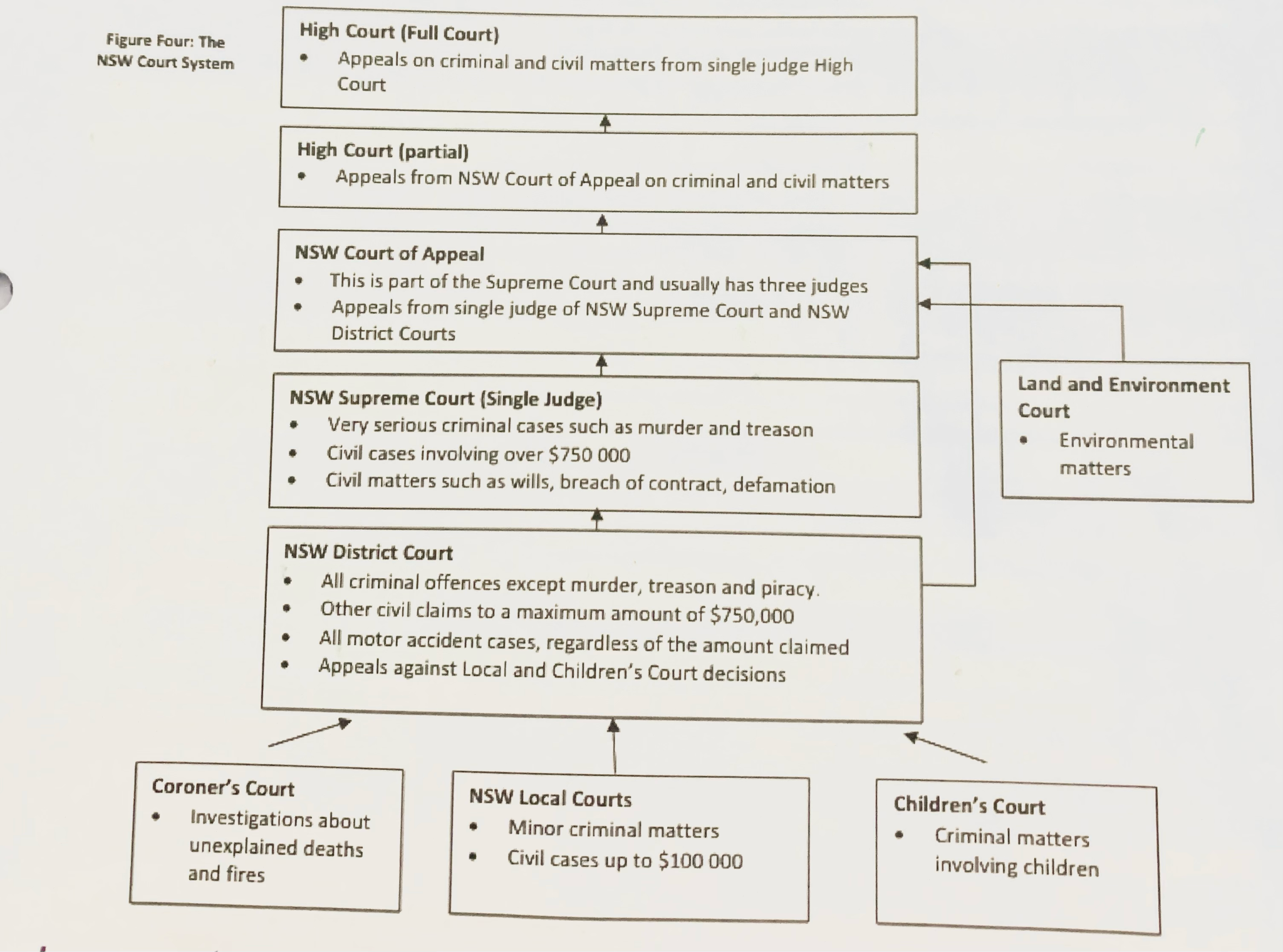 Resolving disputes in order to stop people taking the law into their own hands. The legal system provides a police force (or service), court system and correctional centres (jails and juvenile detention centres) to enforce and administer the law.