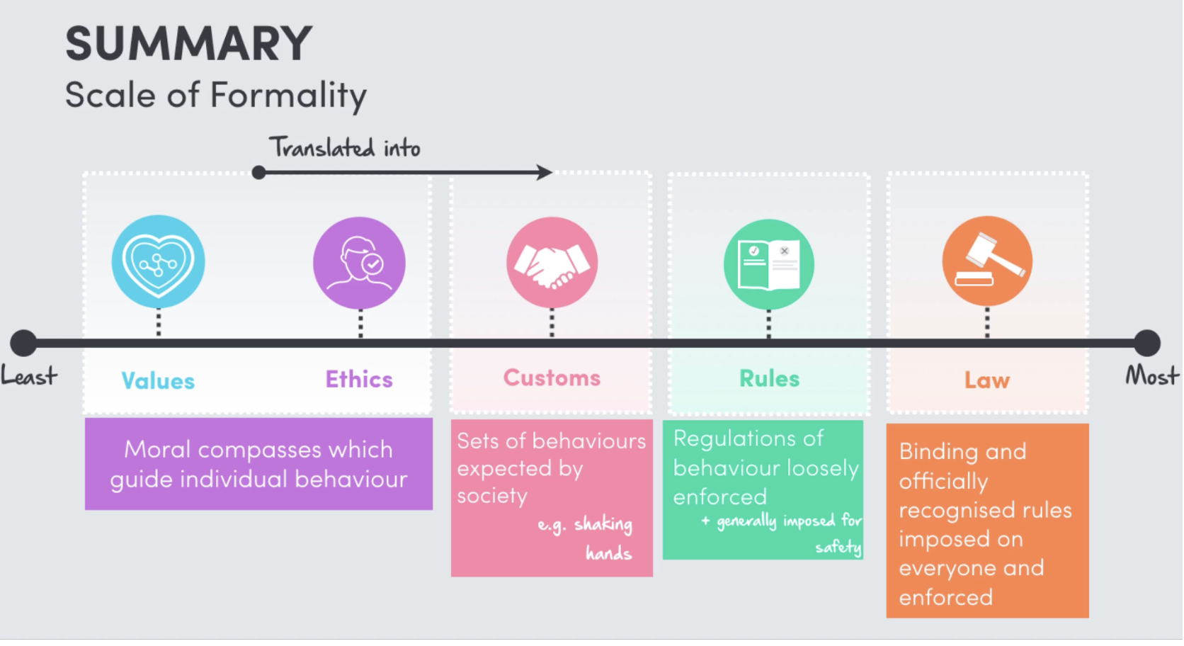 • Over time, these rules became formalised laws, known in society as ‘the law’.