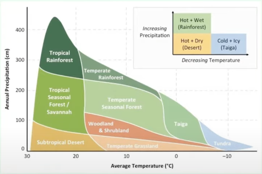 What we’ll notice is that these temperature and precipitation ranges will also predict where on earth we can find the biomes