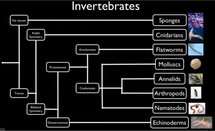 Invertebrates can be classified off: