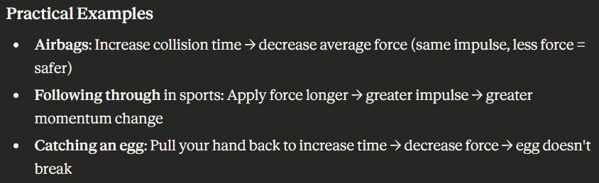 Impulse (N ⋅ s) // Momentum (kg ⋅ m/s)