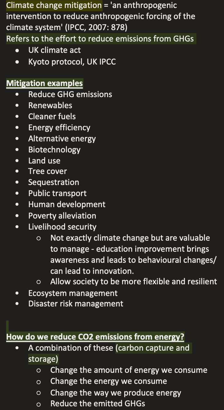 Climate change mitigation = 'an anthropogenic intervention to reduce anthropogenic forcing of the climate system' (IPCC, 2007: 878)
