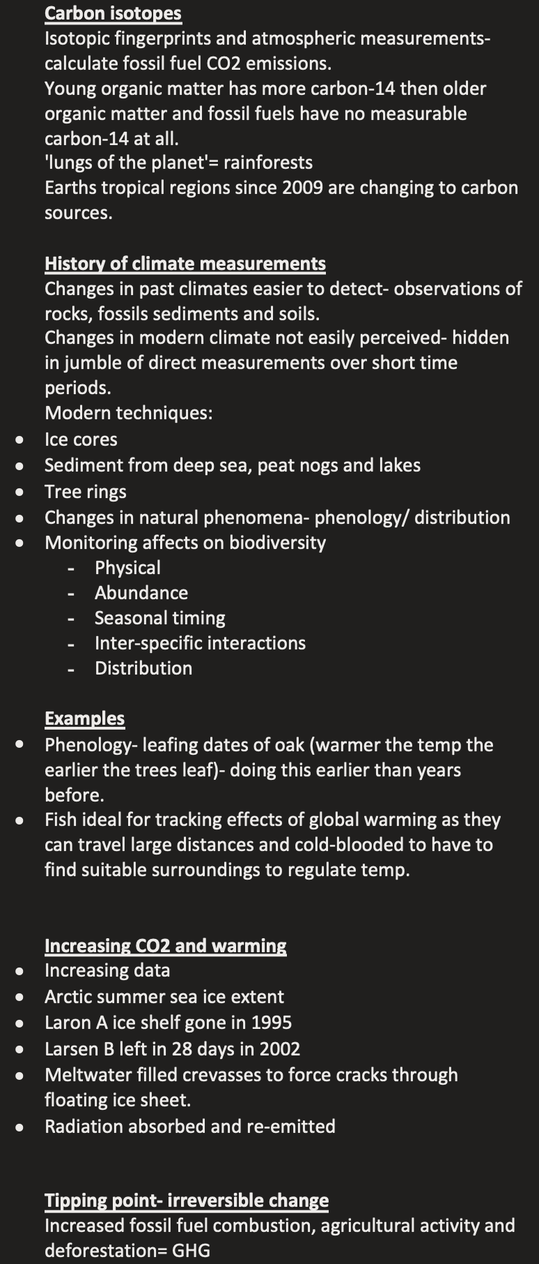 Phenology- leafing dates of oak (warmer the temp the earlier the trees leaf)- doing this earlier than years before.