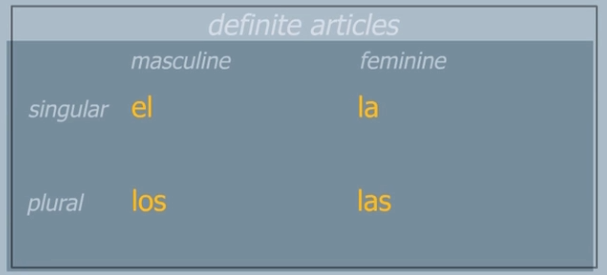 ex: “el estudiante” / “la estudiante” (the [male/female] student)