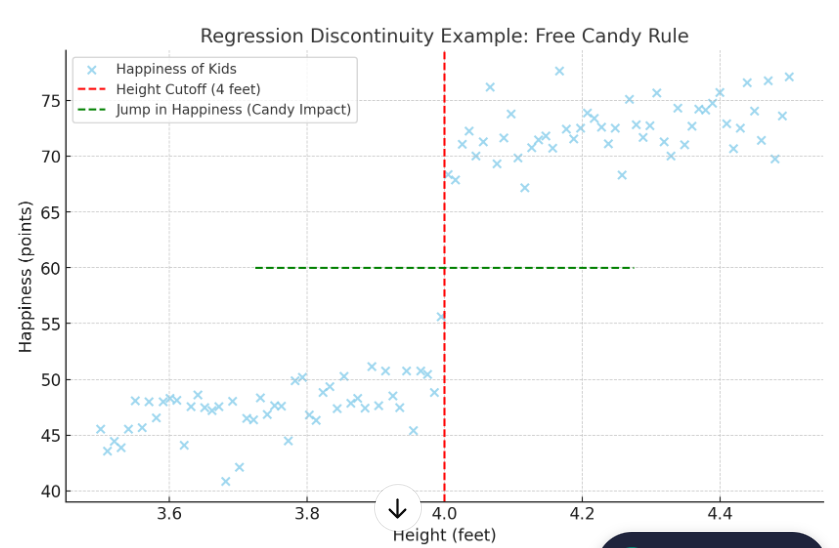 Regression Discontinuity: Treatment is terminated by measurable characteristics and a requirement to be above or below some cutoff.