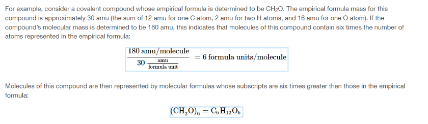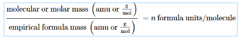 comparing molecular/molar mass to empirical formula mass for the number of formula units per molecule