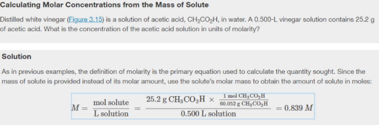 Molarity: number of moles of solute per liter of solution
