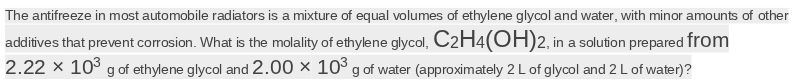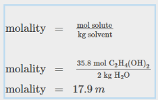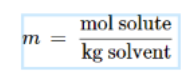Molality: ratio of number of moles of solute to the mass of solvent in kg