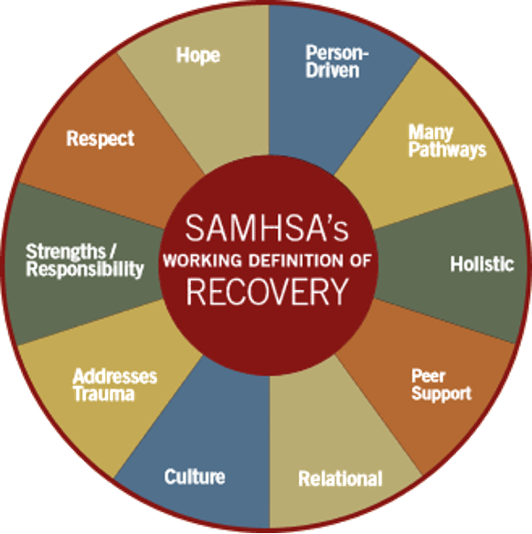 The Recovery Model: Focus on strengths (not weaknesses), community involvement, health, and purpose.