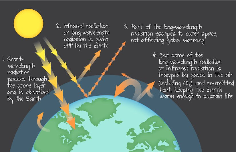- Certain gases in the atmosphere absorb radiation and retain heat, causing Earth's atmosphere to be warmed.