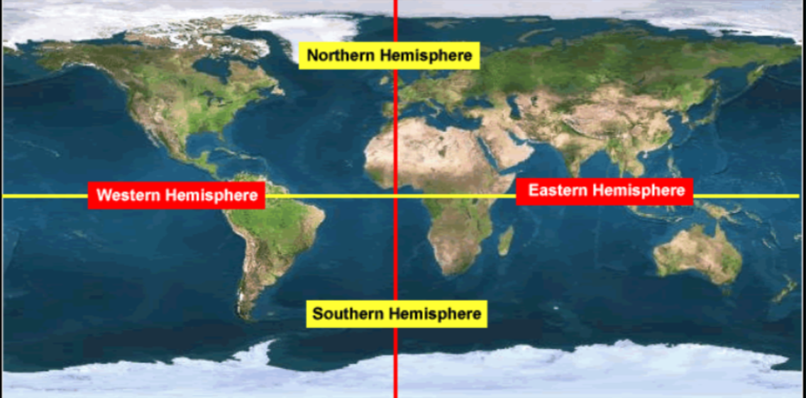 Northern Hemisphere, Southern Hemisphere,Eastern Hemisphere,Western Hemisphere