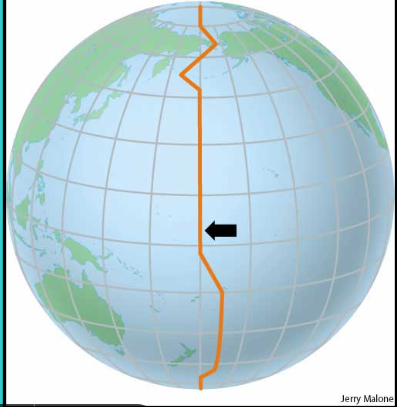 International Date Line: A vertical line that runs from one pole to the other. It