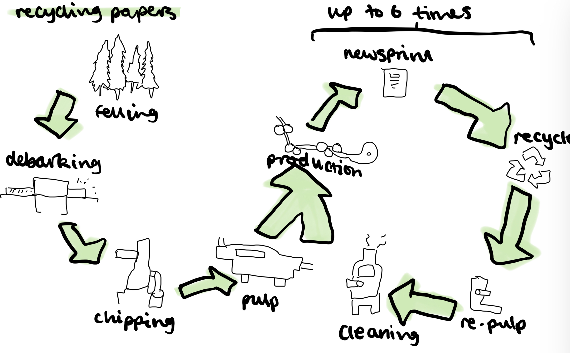 recycling saves water each time and reduces the need for new raw materials. untreated paper doesn’t need to be processed before recycling but treated paper has to be de-inked, pulped and bleached. on average 4 billion trees are felled per year for paper and board production