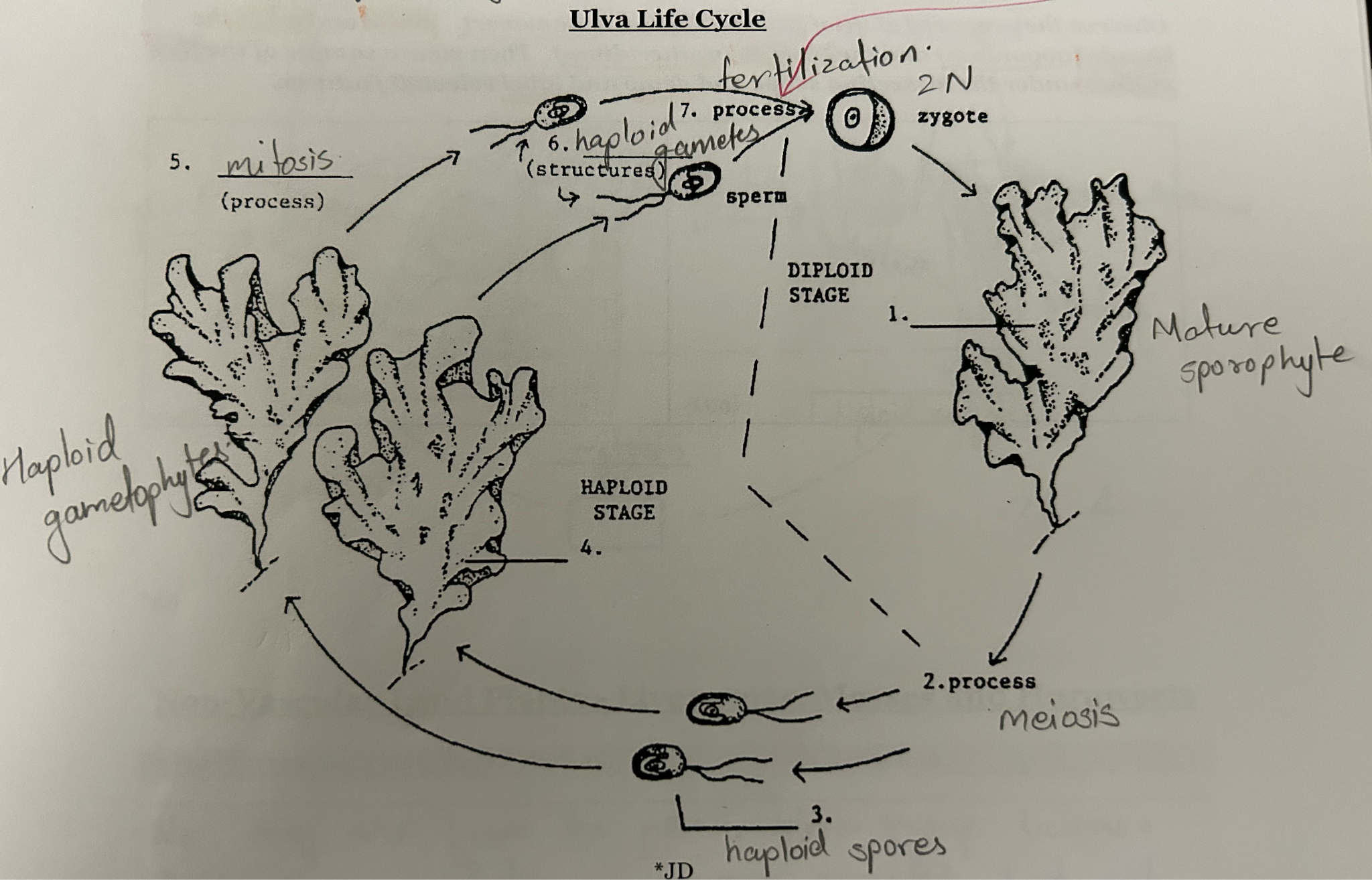 Fern Prothalim: Haploid With sporophyte: Diploid