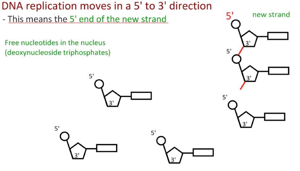 - ADN polymérase se déplace toujours dans la direction 5’ - 3’