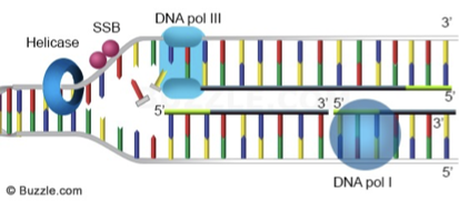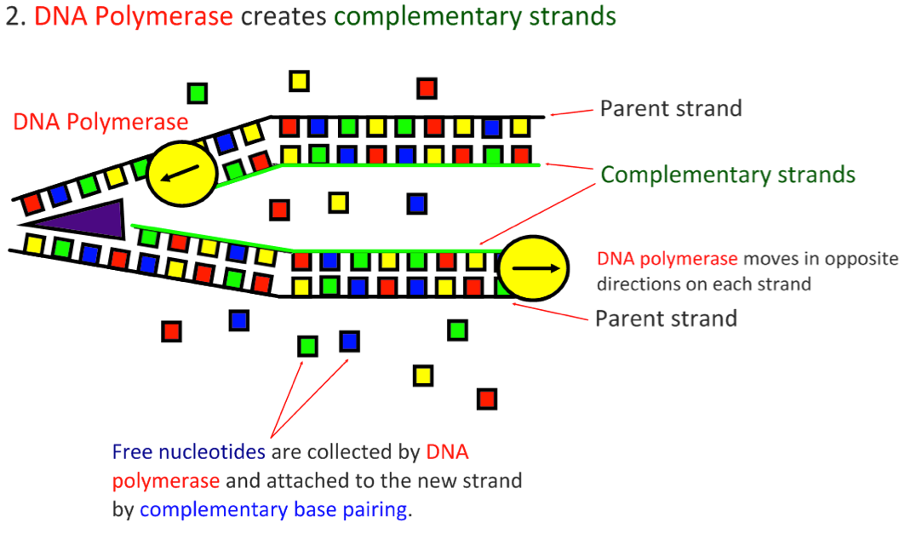 - Les deux brins séparés deviennent les parents/le gabarit pour le processus de réplication.