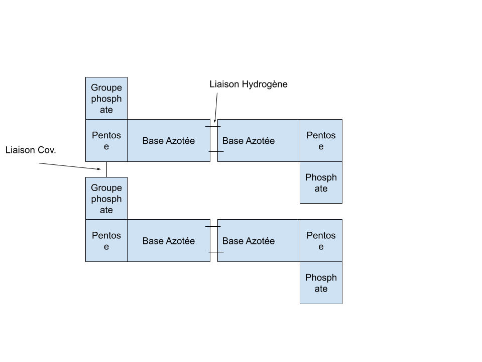 Phosphate + Sucre + Base Nucleotide + 2 H2O