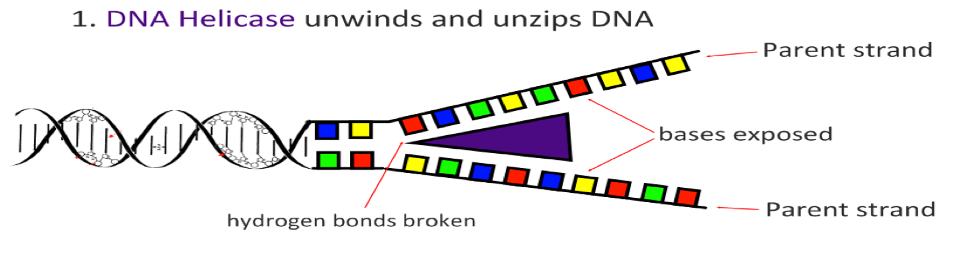 - Sépare les deux brins de nucléotides en brisant les liaisons hydrogènes entre les bases complémentaires.