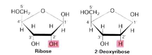 - Un sucre pentose (Désoxyribose [ADN] ou Ribose [ARN])