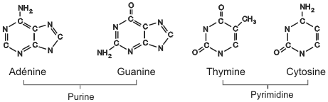4 Types : A, T, C, G. C et G Sont purine (Pure as gold), C et T sont des Pyrimidines.