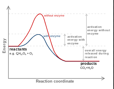 Organisms utilize enzymes (organic catalysts) to lower the activation energy required for reactions.In reaction coordinates, enzymes are represented by a decrease in the peak of the activation energy barrier, promoting the reaction efficiently without being consumed.