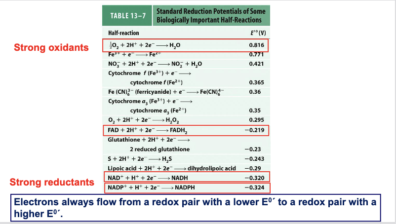 Standard reduction potentials (E^0’) are used to determine the directionality of redox reactions, with higher potentials signifying a greater tendency to gain electrons.