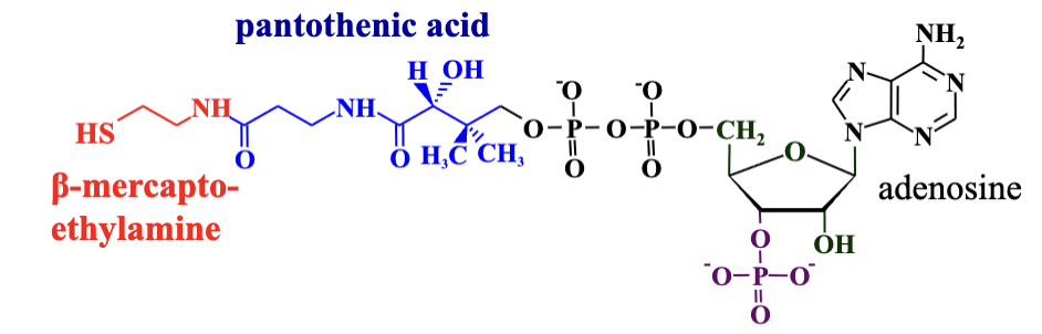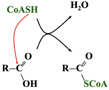 CoASH forms thioester derivatives with organic acids (R-COOH)
