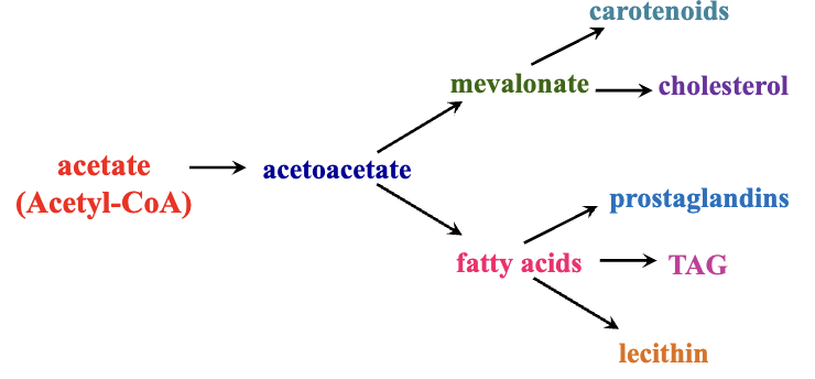 Divergence in Anabolism: Acetyl-CoA serves as a building block for synthesizing fatty acids, steroids, and other complex molecules.