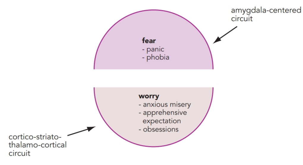 Serotonin is a key neurotransmitter that innervates the amygdala as well as all the elements of CSTC circuits, namely, the prefrontal cortex, striatum, and thalamus. SSRIs SNRIs. buspirone, is recognized as a drug for generalized anxiety disorder, but not for treatment of the other anxiety/trauma disorder subtypes. 5HT1A agonists exert their therapeutic effects by virtue of adaptive neuronal events and receptor events. this means DELAYED response like SSRI etc. benzos FASTER