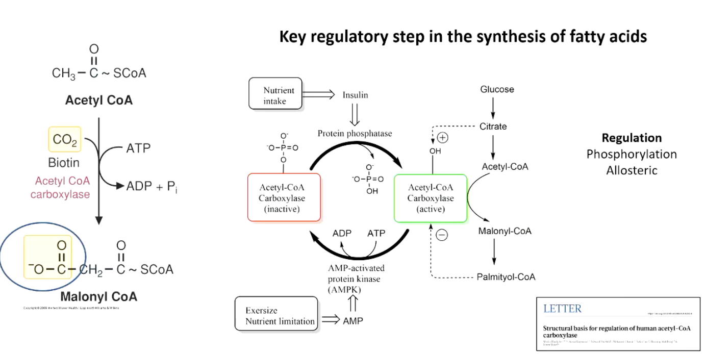 insulin presence =ACC on = acetyl coa turn into malonyl coa