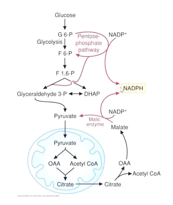 NADPH can also come from the pentose-phosphate pathway