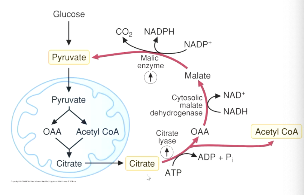 acetyl-CoA generated from citrate→OAA step