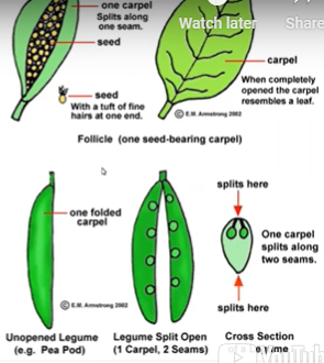 follicle: a simple, dry, dehiscent fruit that splits along one suture (ex: milkweed, magnolia)