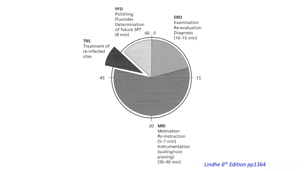 SPT visits include a re-evaluation phase, a reinstruction phase, an instrumentation phase, treatment of reinfected sites and a polishing phase.