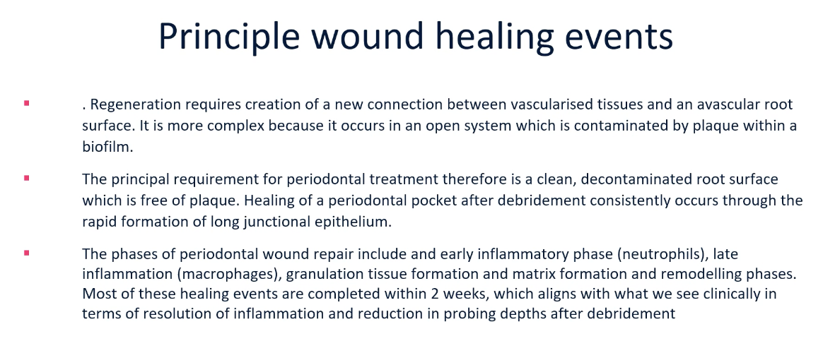 Ideal form of healing is regeneration however repair via long junctional epithelium is more predictable