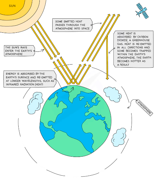 - Increase in carbon dioxide and methane concentrations in the atmosphere cause an enhanced greenhouse effect the leads to climate change