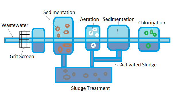 - Organic matter is digested via the ‘sludge digester’ and allowed to settle in the ‘sludge settling tank’