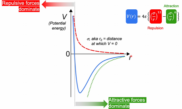 The Lenard-Jones potential plots the potential energy between 2 atoms as a function of the distance between them.
