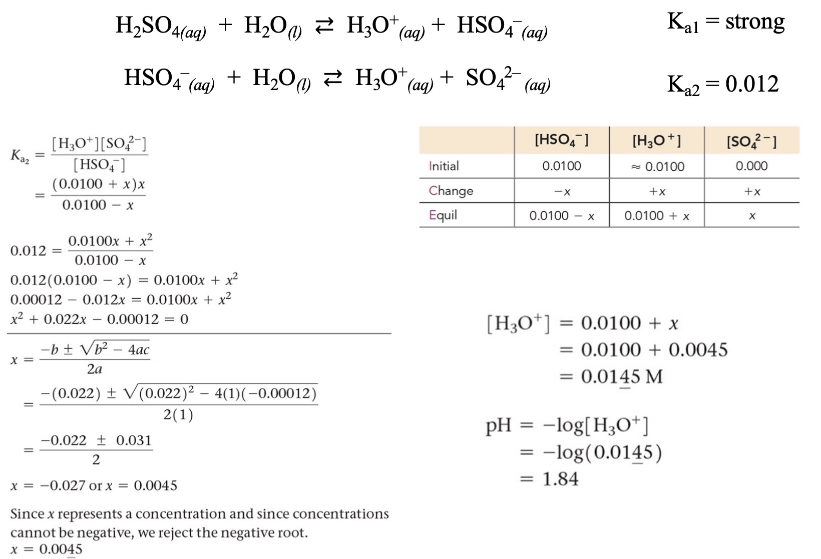 The second proton contributes a negligible amount of H3O+ and is ignored