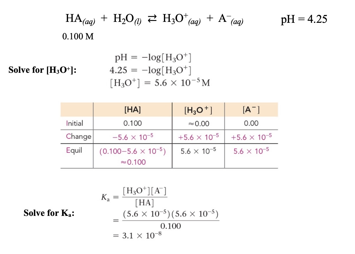 The equilibrium expression for dissociation is given by: , where [HA] is the concentration of the undissociated acid.