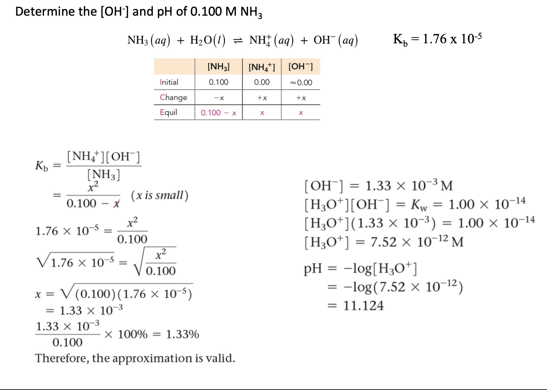 Weak Bases: Do not completely dissociate; must calculate hydroxide concentration similarly to weak acids using ICE tables:
