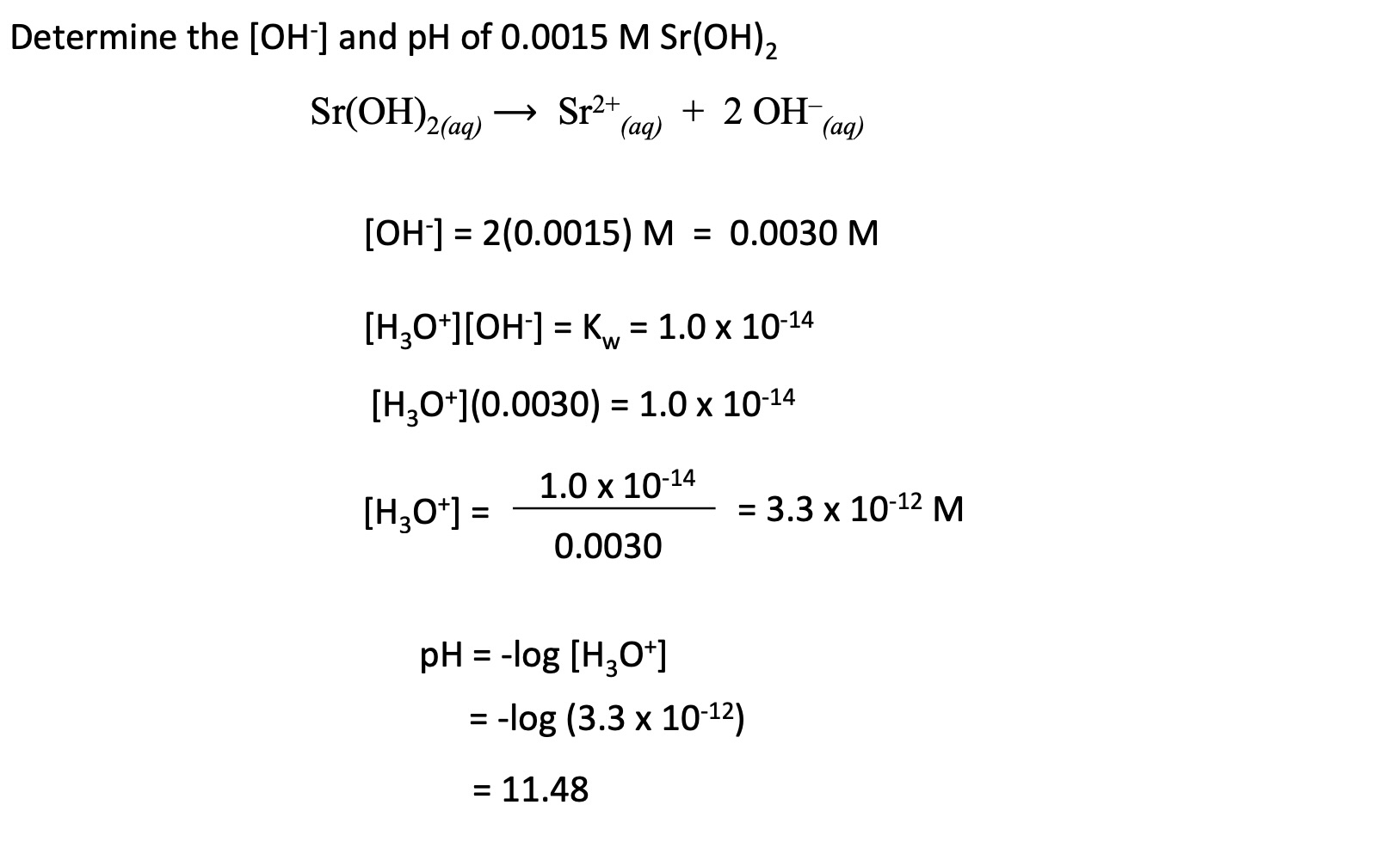For strong bases, the ionization is assumed to be complete, so the concentration of the base equals the concentration of the hydroxide ions produced (with stoichiometry)