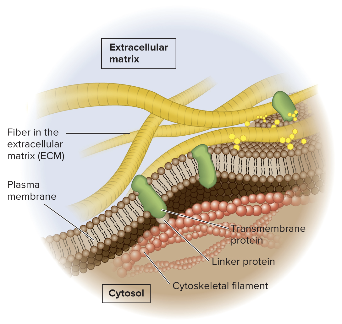 Membrane proteins may also be attached to molecules that are outside the cell, such as components of the ECM.