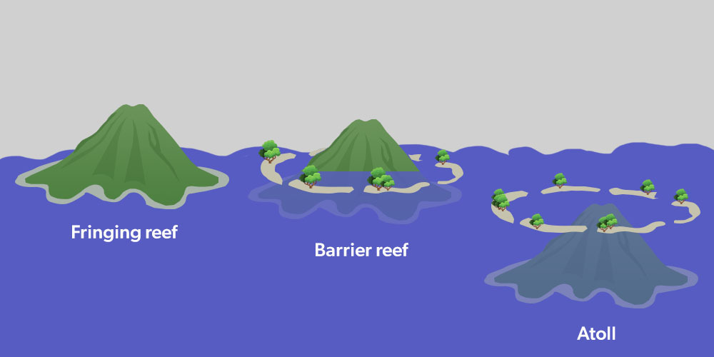Three main types of coral reefs: