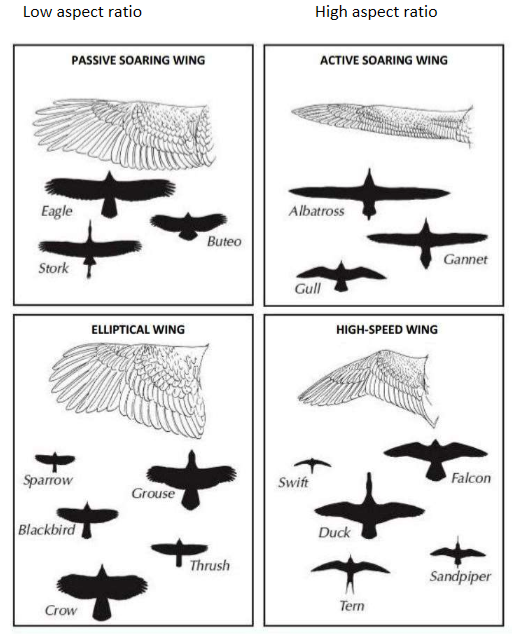 different wing shapes are associated with different types of flight