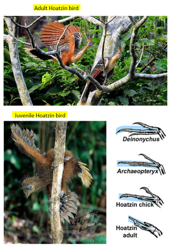 The Hoatzin bird has retained its claw at the end of its wings